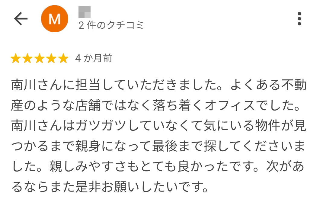 不動産会社の利益になる物件だけを紹介し、申込むまで帰れない、などといった不親切な業務は一切行いません。